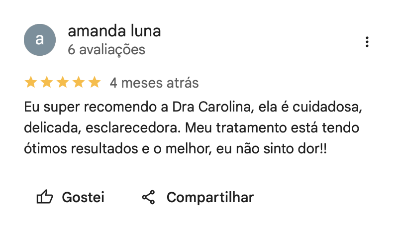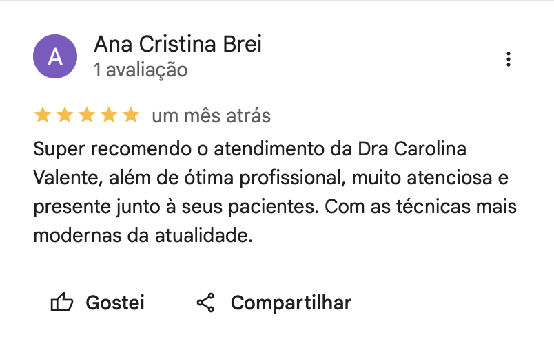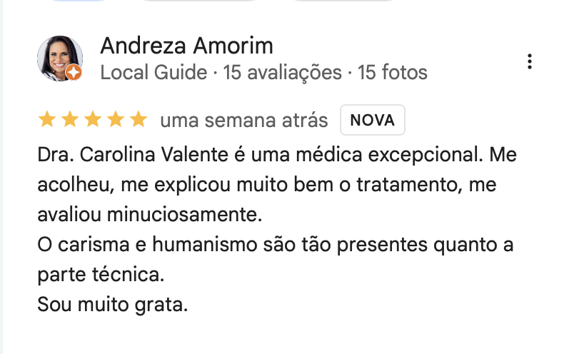 O que os pacientes dizem sobre a doutora Carolina Valente: