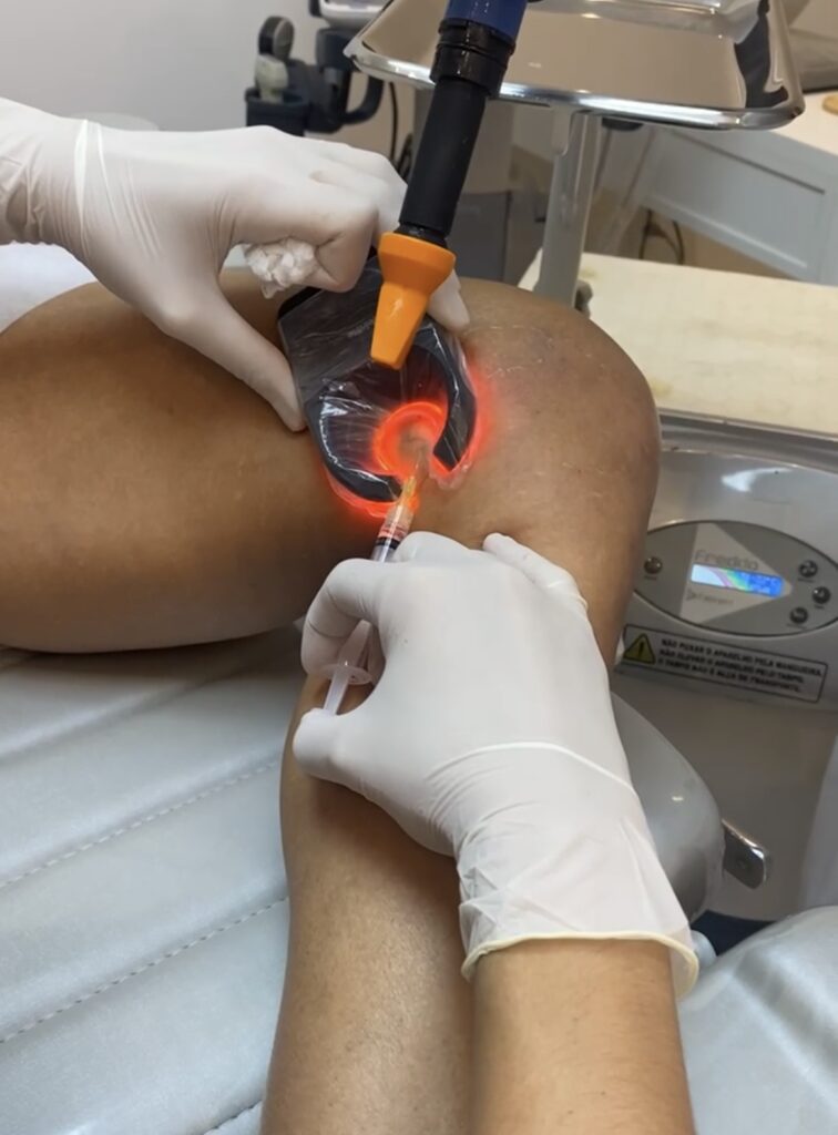 Escleroterapia Líquida: Esta é a técnica mais tradicional e amplamente utilizada para tratar microvarizes e telangiectasias (os “vasinhos de aranha”), popularmente conhecida como “aplicação”. O líquido esclerosante, injetado diretamente nos pequenos vasos, provoca uma reação inflamatória controlada que leva ao seu fechamento. É um procedimento simples, de rápida execução e muito eficaz para eliminar as veias de calibre reduzido que causam desconforto estético. Já foi o tempo em que era a única terapia disponível, hoje entendemos a importância da combinação desta às demais terapias devido a diferenças entre os vasos doentes e características apresentadas por cada paciente.