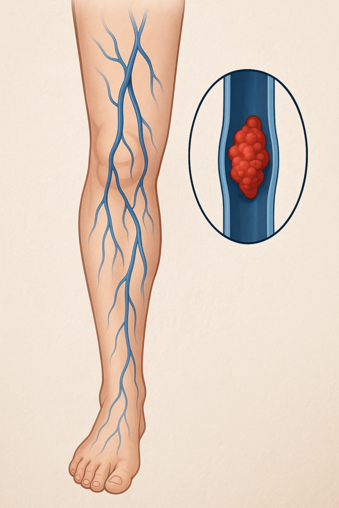 A trombose venosa profunda (TVP) ocorre quando um coágulo sanguíneo (trombo) se forma no interior das veias profundas, geralmente localizadas nas pernas, coxas ou pelve. Essas veias são responsáveis por transportar o sangue de volta ao coração, e quando o trombo se instala, ele pode bloquear parcial ou totalmente o fluxo sanguíneo, resultando em inchaço, dor, sensação de peso, endurecimento do trajeto venoso e aumento da temperatura local. Em muitos casos, no entanto, a TVP pode ser silenciosa, o que contribui para atrasos no diagnóstico.